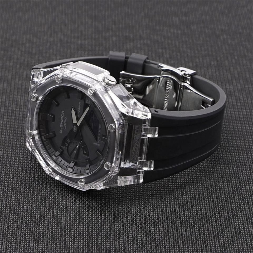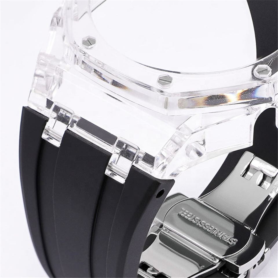 Boîtier PC transparent et bracelet de montre en caoutchouc - Ensemble boucle papillon en métal