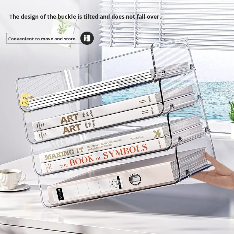 Étagère de rangement de fichiers classique empilable en PET transparent, support de bureau, organisateur de table pour livres et papier A4