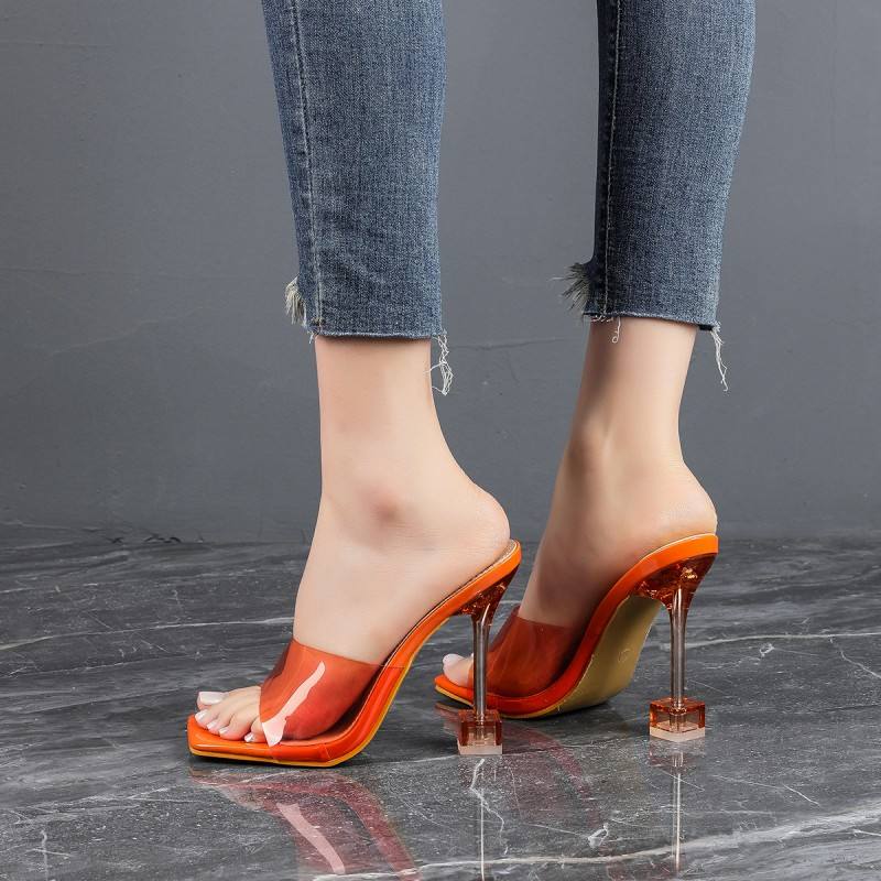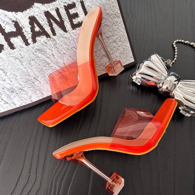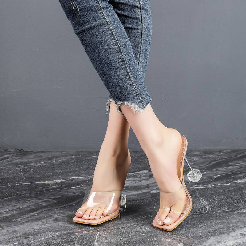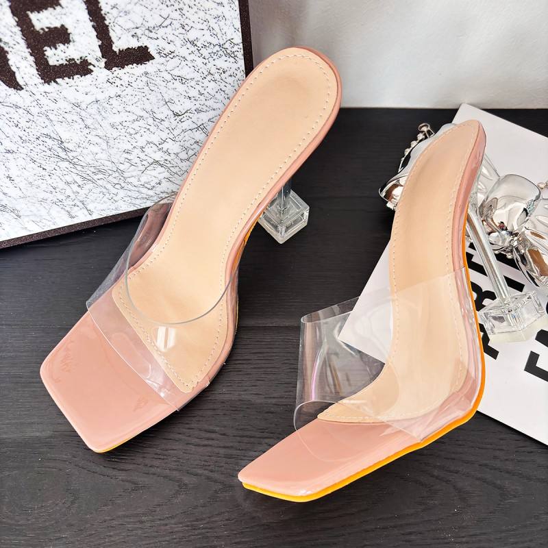 Mules à talons hauts transparentes en PVC 2026 à bout ouvert, confortables pour les soirées, sandales et pantoufles pour femme