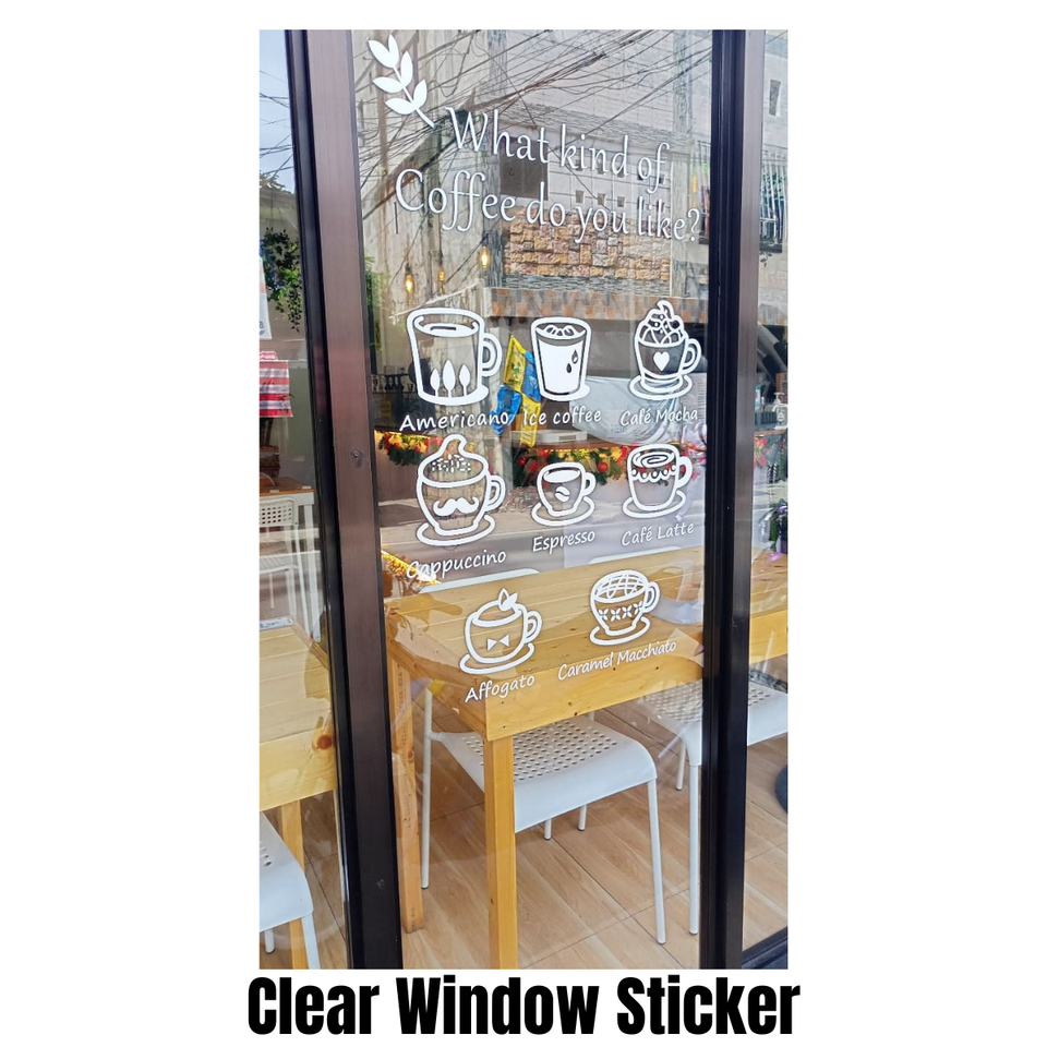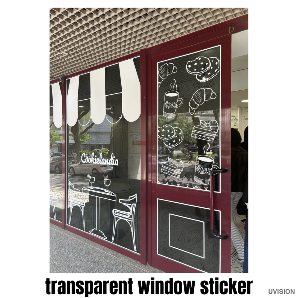Autocollant transparent en PVC pour fenêtre, impression UV personnalisée, autocollant adhésif pour vitrine de magasin, café, restaurant