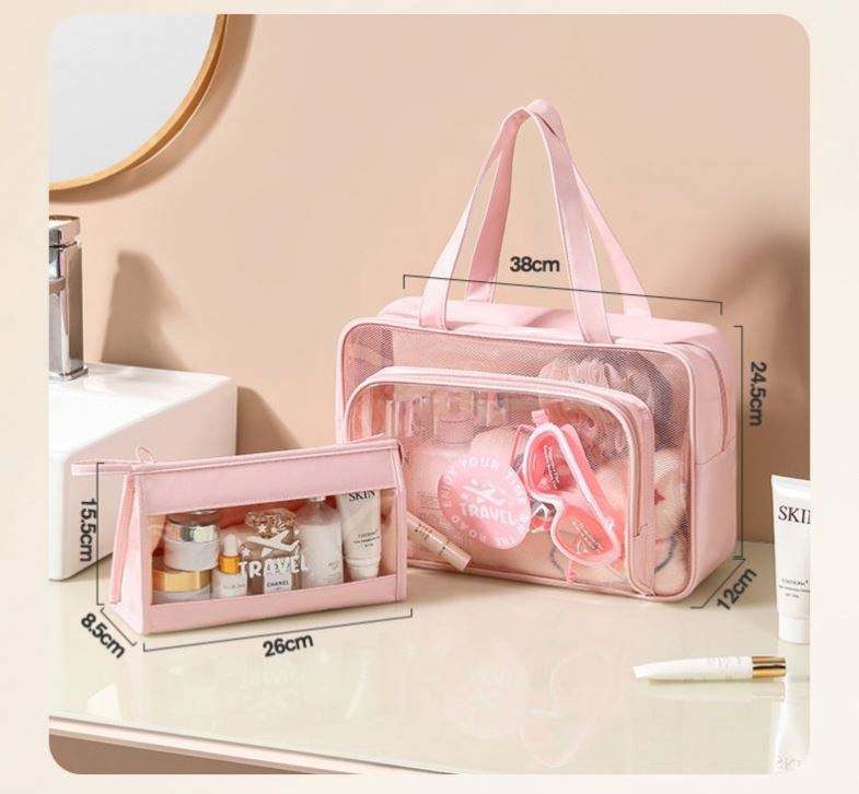 Trousse de Toilette Transparente en PVC, Sac de Rangement Cosmétique Étanche pour la Natation, Ensemble de Sacs de Maquillage Transparents pour le Voyage