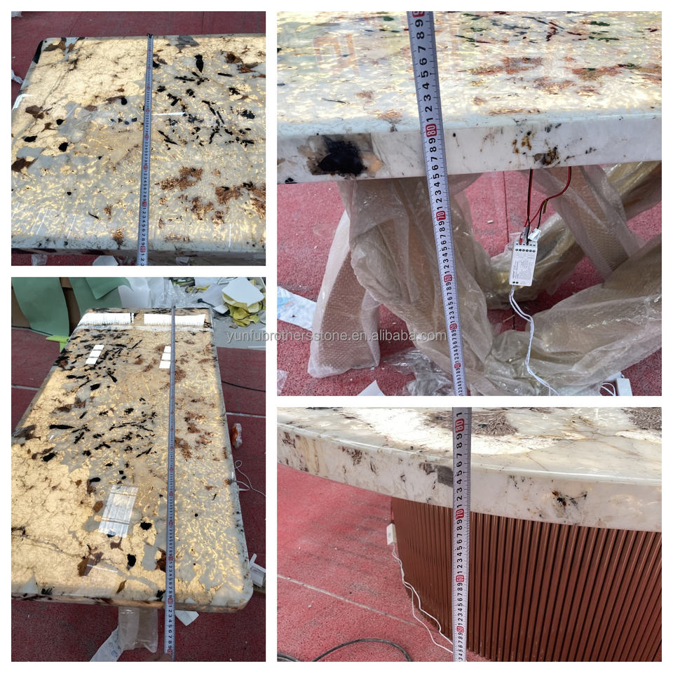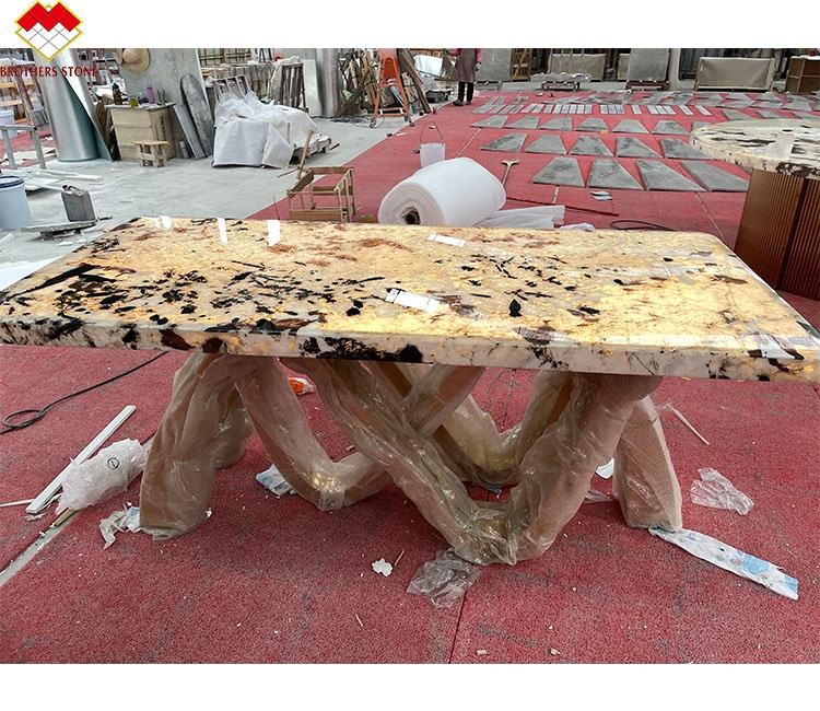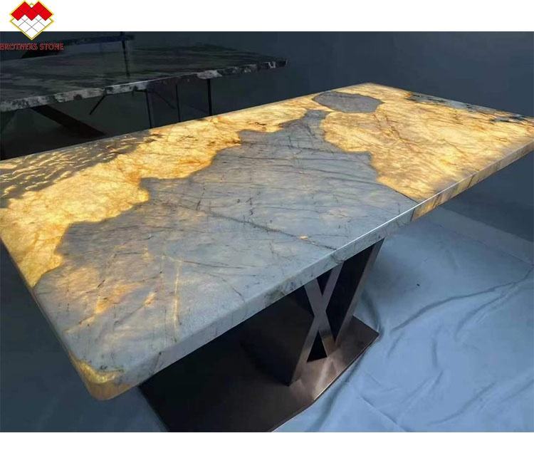 Ensemble de table à manger en quartzite transparente de Patagonie avec table basse en marbre Luni Stone rétroéclairée en granit Pandora pour centre commercial atelier