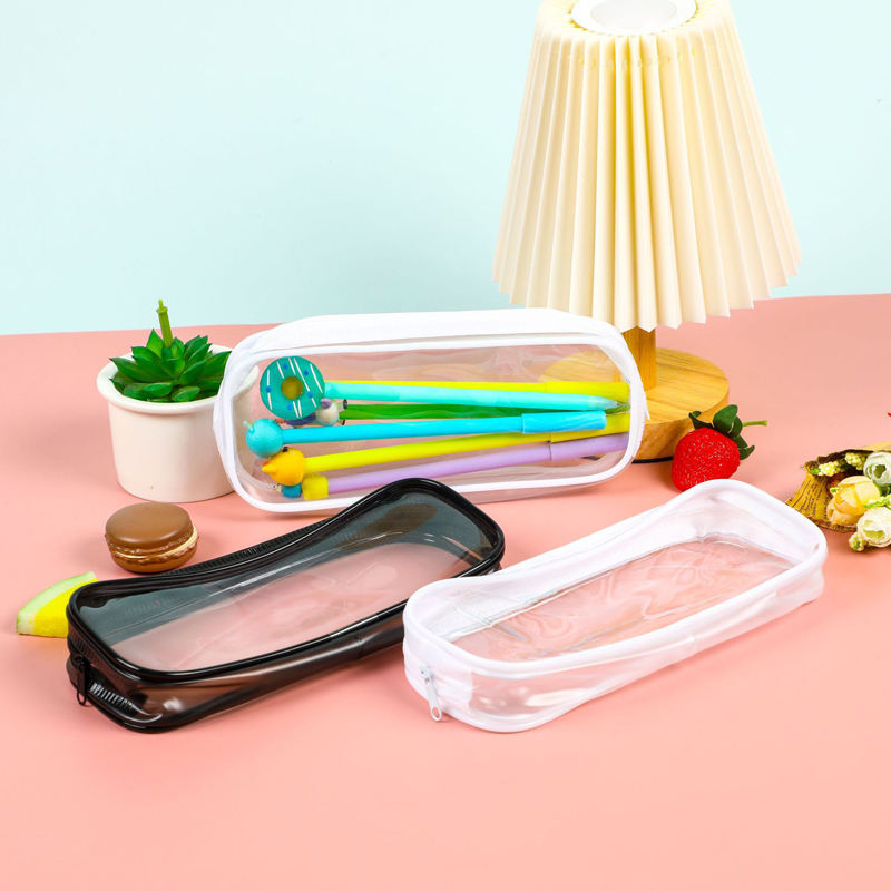 Étui à crayons à fermeture éclair en plastique Transparent pour enfants maquillage clair sac à stylo cosmétique fournitures scolaires