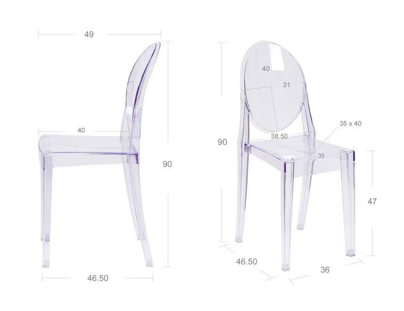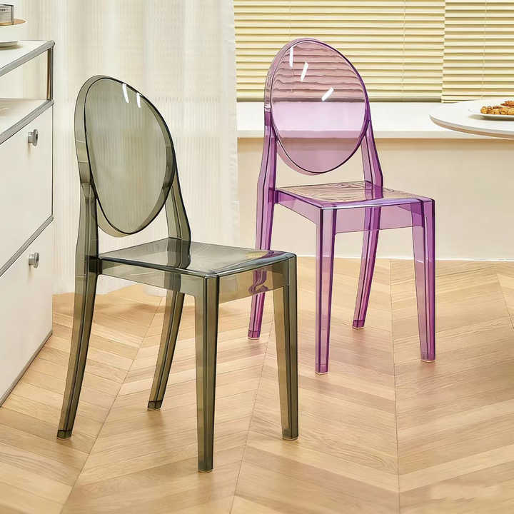 Chaise transparente en plastique Devil – Conception légère et empilable pour la maison, le bureau, les repas et les mariages (moderne et durable)