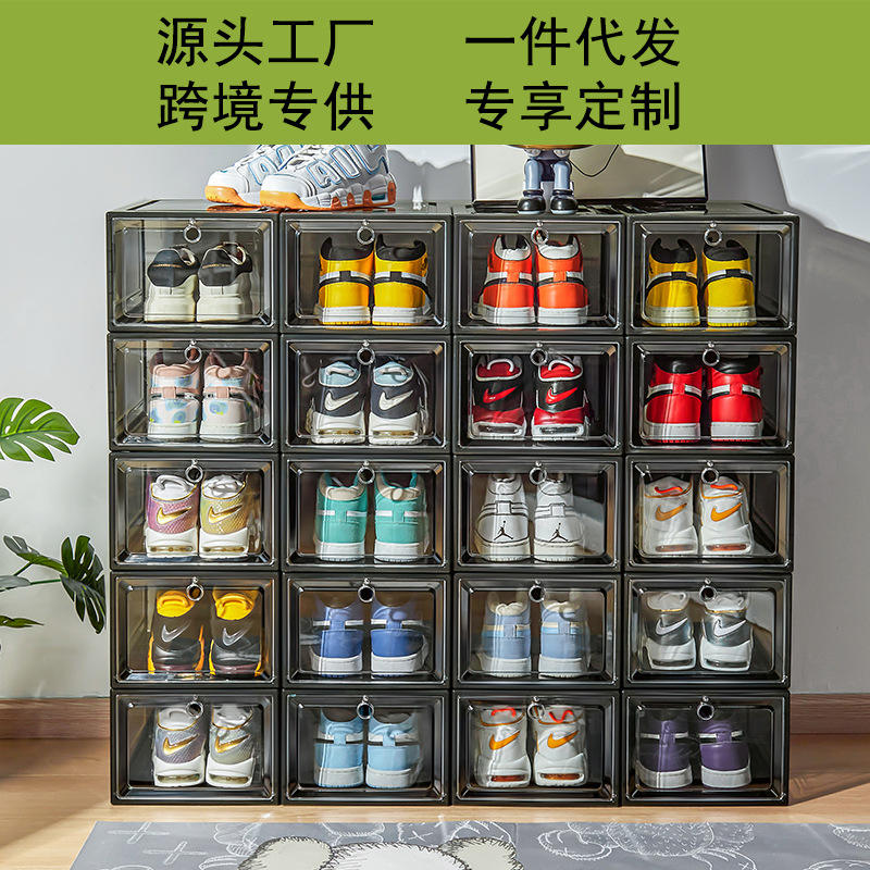 Boîte de rangement pour chaussures en plastique transparent, rectangulaire, 34,6x27x19,5 cm, empilable avec couvercle, pour organiser les chaussures