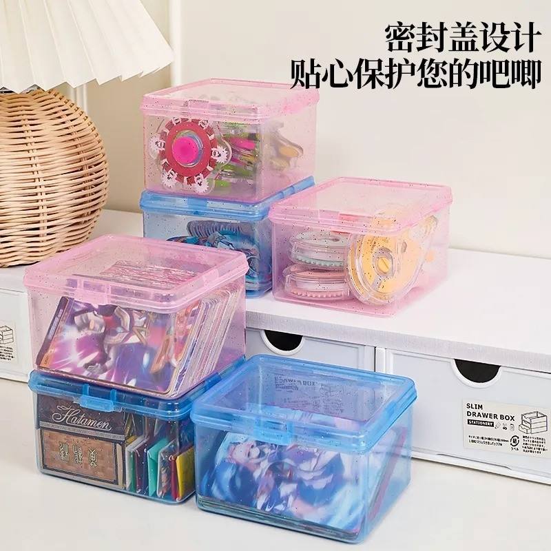 Boîte de rangement rectangulaire transparente bleu poudré avec couvercle pour cartes, pièces de monnaie, organisateur de bureau, conteneur de bureau 30g Zhejiang