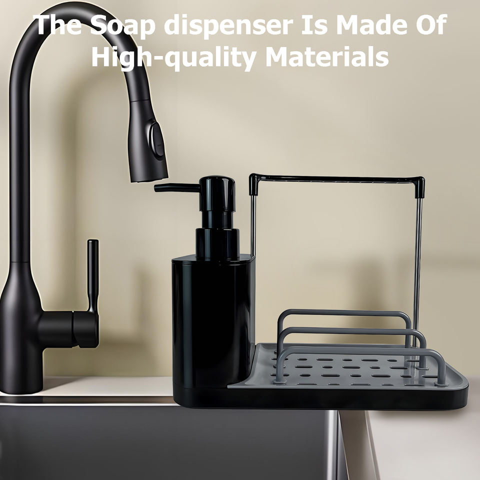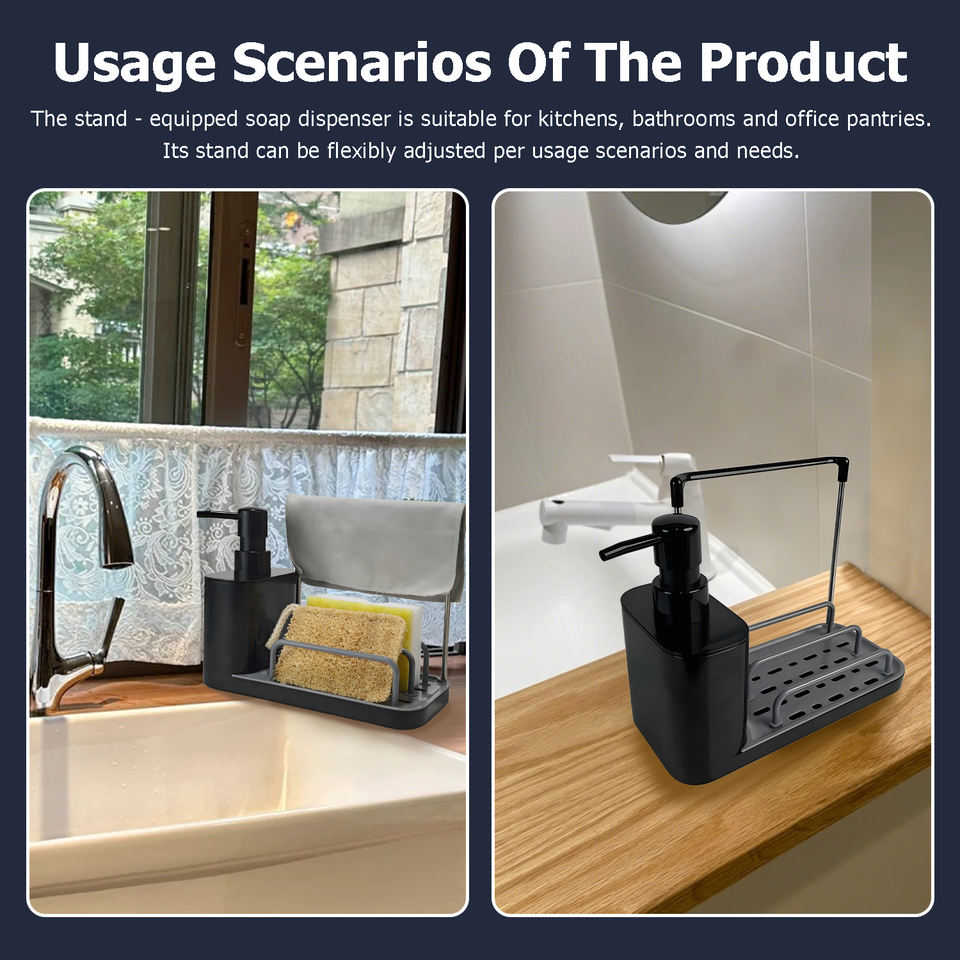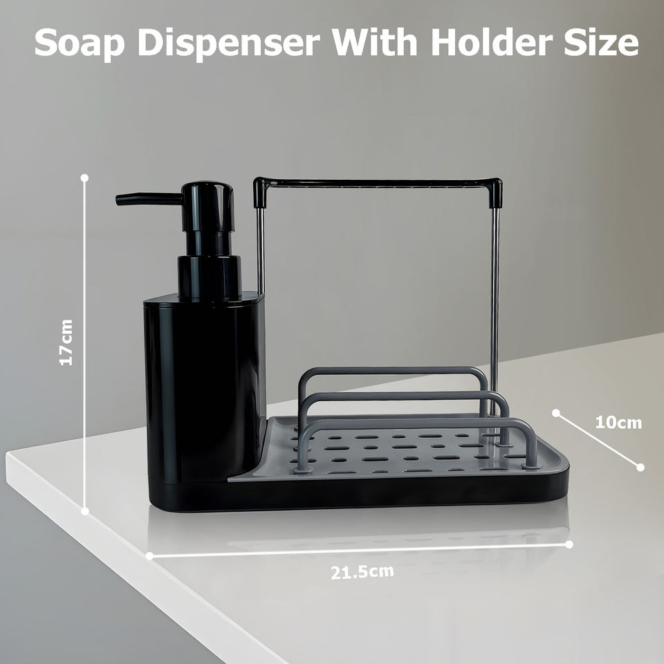Distributeur de savon de cuisine rectangulaire transparent avec porte-éponge - Compatible liquide vaisselle/gel douche