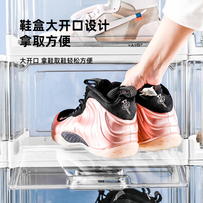Boîte à chaussures transparente avec ouverture latérale et couvercle, boîte de rangement rectangulaire pour la maison, le dortoir, organisateur de chaussures 8004