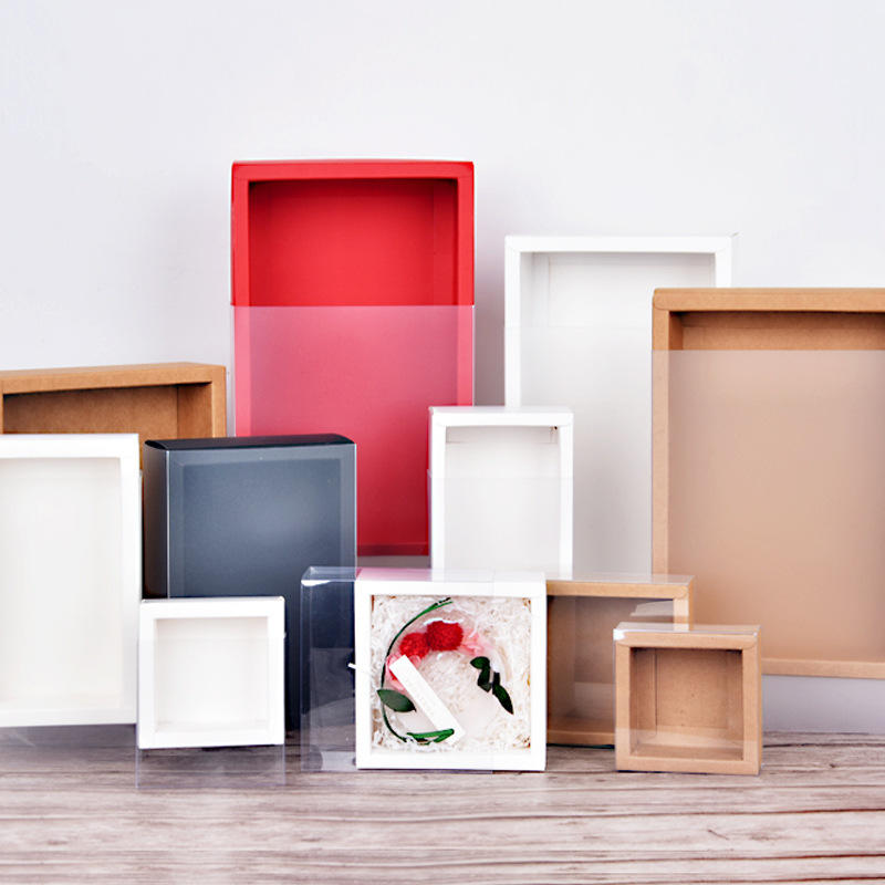 Boîte à tiroir carrée transparente pliable en papier kraft, faite à la main, pour savon, fleurs, thé, chaussettes, sous-vêtements, emballage cadeau, imprimé pailleté