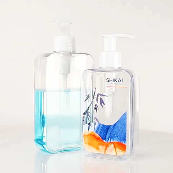 Bouteille de lavage transparente carrée en PETG 200ML 300ML pour usage domestique et hôtelier, flacon à presser pour shampoing, gel douche, lotion, savon liquide - 200ML