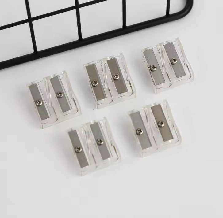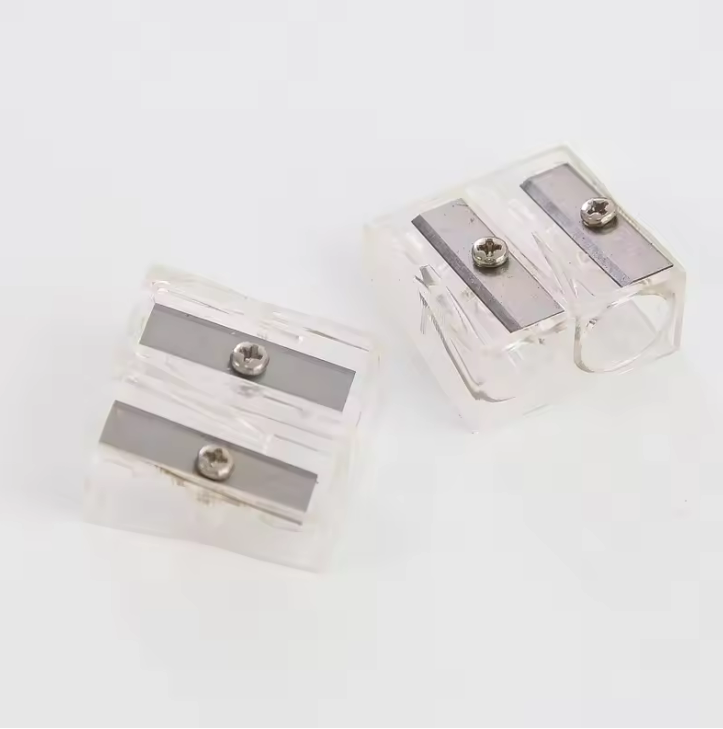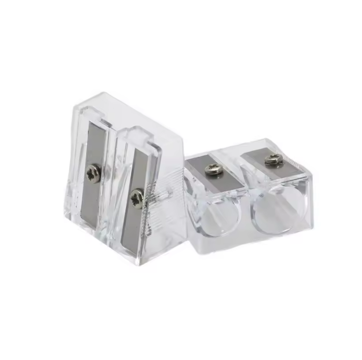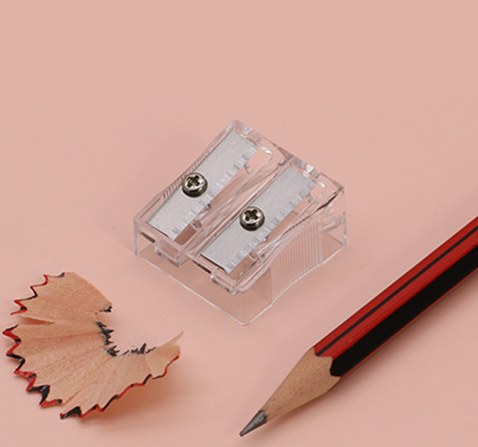 Taille-crayon transparent pour étudiants, blanc, avec deux grands trous pour une utilisation en classe