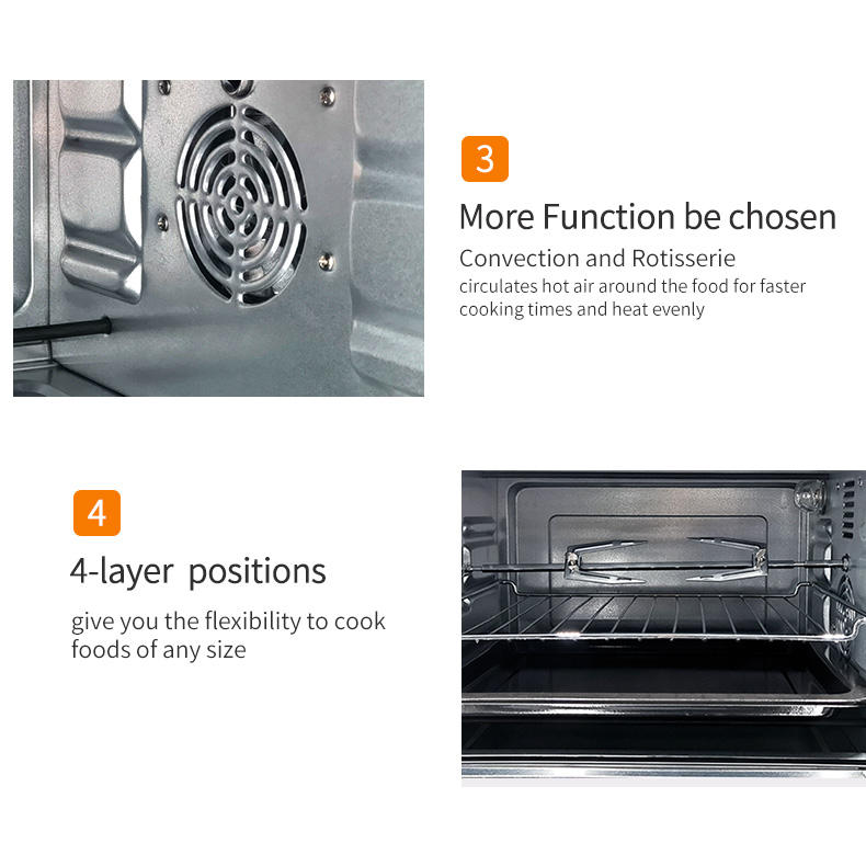 Four électrique domestique en verre trempé transparent 26L pour cuisson par convection et pain grillé pour boulangeries et boulangeries
