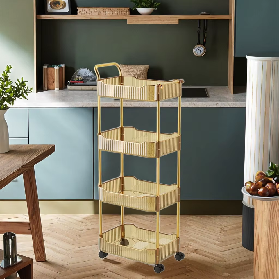Le support de rangement transparent pour chariot peut être déplacé de deux à quatre étages, support de rangement polyvalent pour salon et cuisine