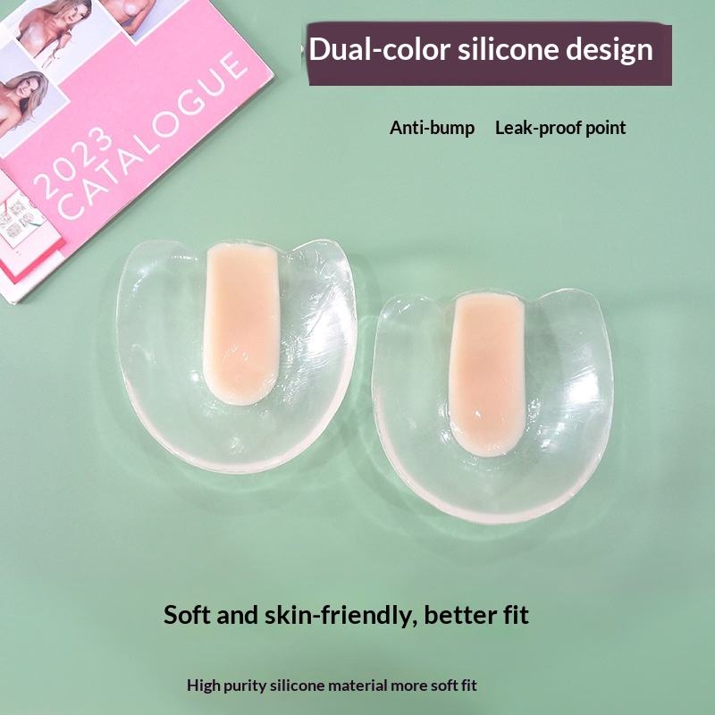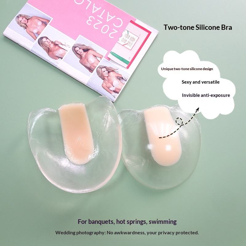 Soutien-gorge adhésif transparent bicolore en silicone, cache-tétons invisibles sans couture, coussinets fins sans bretelles pour femmes