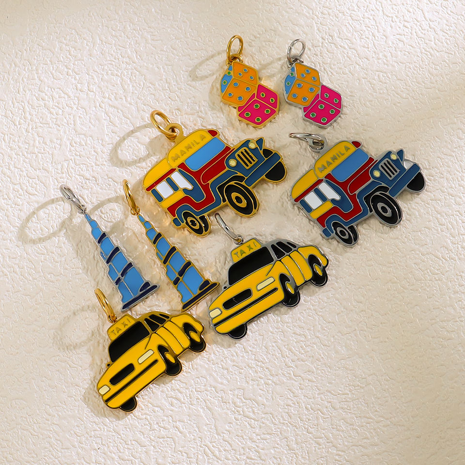 Transportation Series Enamel Taxi Jeep Roadblock Pendant for Jewelry Making Metal DIY Stainless Steel Charms Wholesale