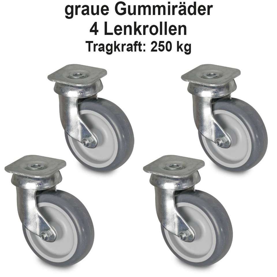 Transportroller Für 600x400 mm Eurobehälter, Offenes Deck, 4 Lenkrollen, Graue Gummiräder, Grau