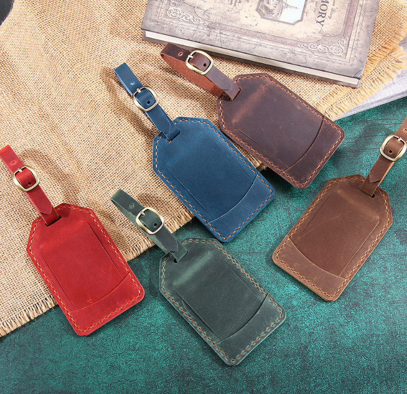 Accessoires de voyage, étiquette de bagage en cuir imperméable personnalisée, étiquette de valise avec couverture de confidentialité complète