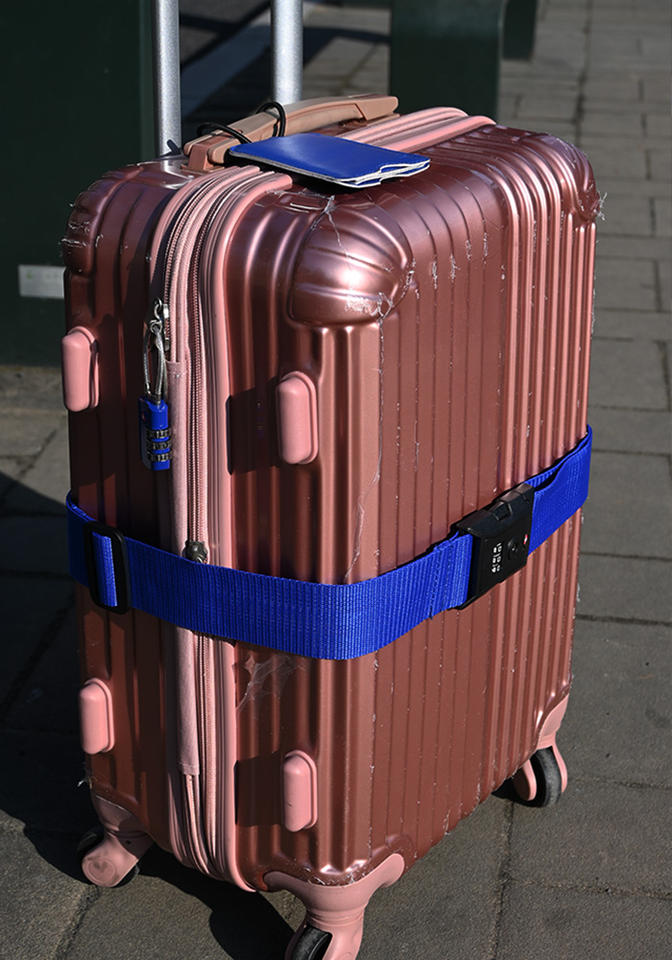 Passeport + serrure TSA + sangles de bagages + étiquettes de valise