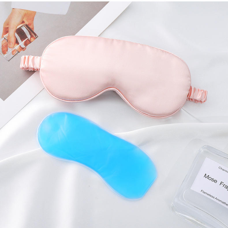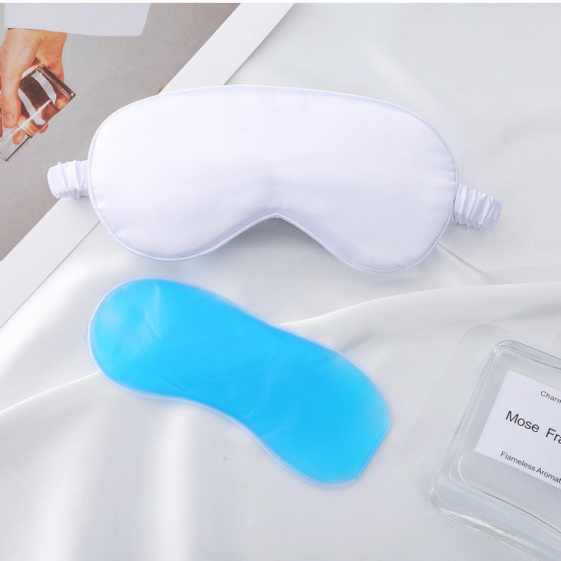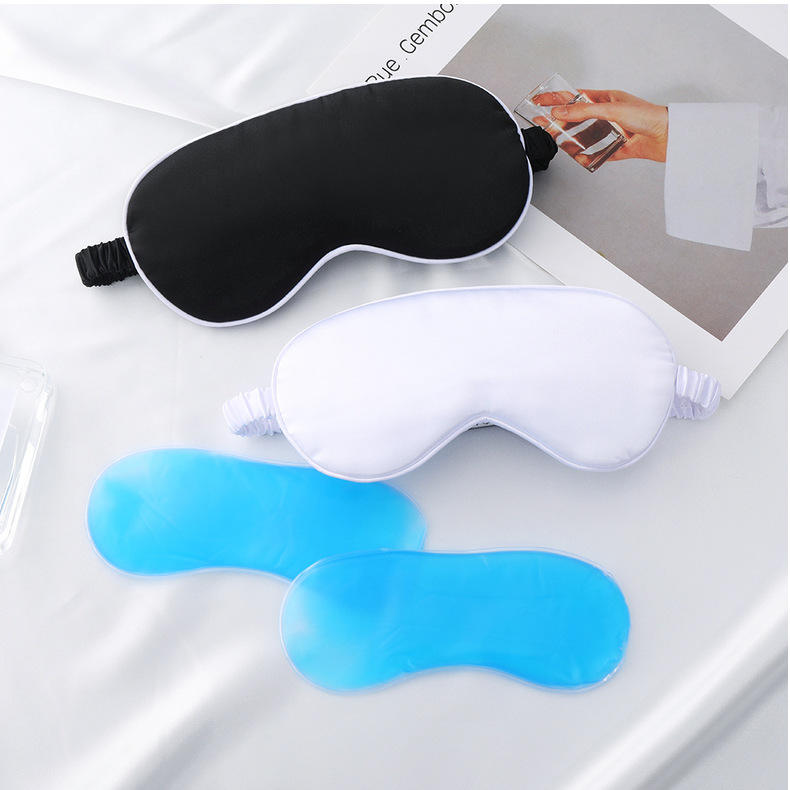 Masque de sommeil en soie satinée avec compresse froide/chaude personnalisée pour voyage, avion, hôtel, avec poche à glace