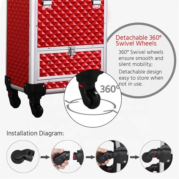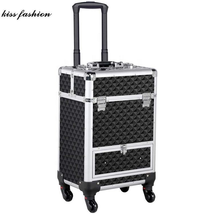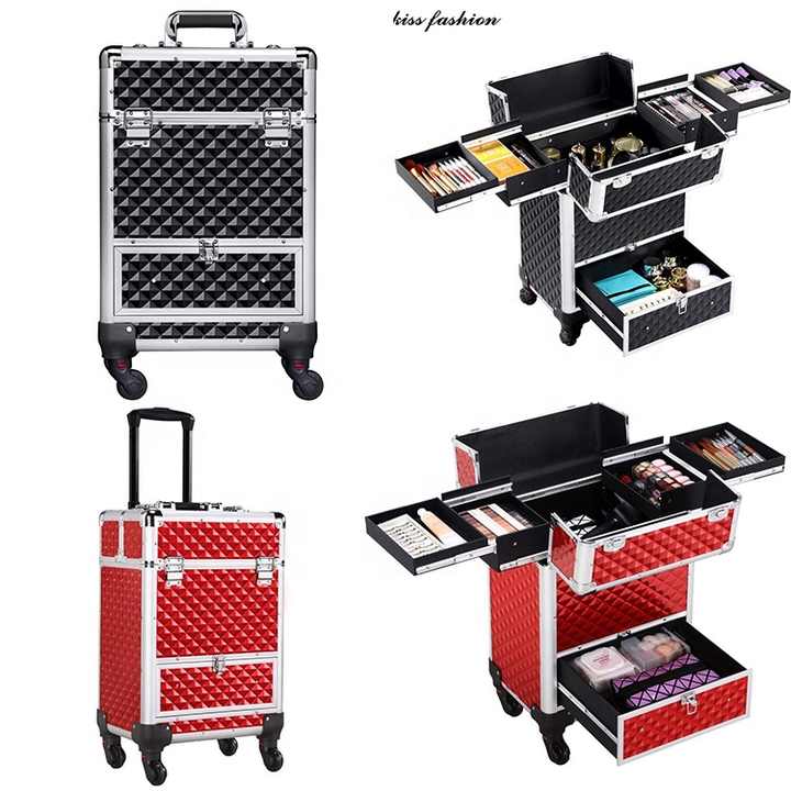 Mallette de transport de rangement de beauté, chariot en aluminium pour femmes, boîte de beauté professionnelle, trousse de voyage pour coiffeuse