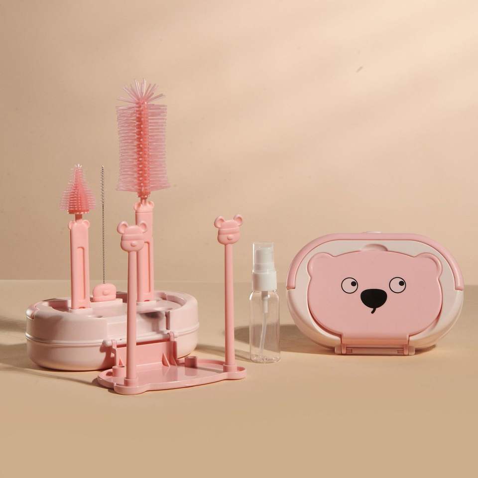Travel Bottle Cleaner Kit Nipple Brush Straw Brush Soap Dispenser Storage Box Baby Bottle Brush Set with Drying Rack