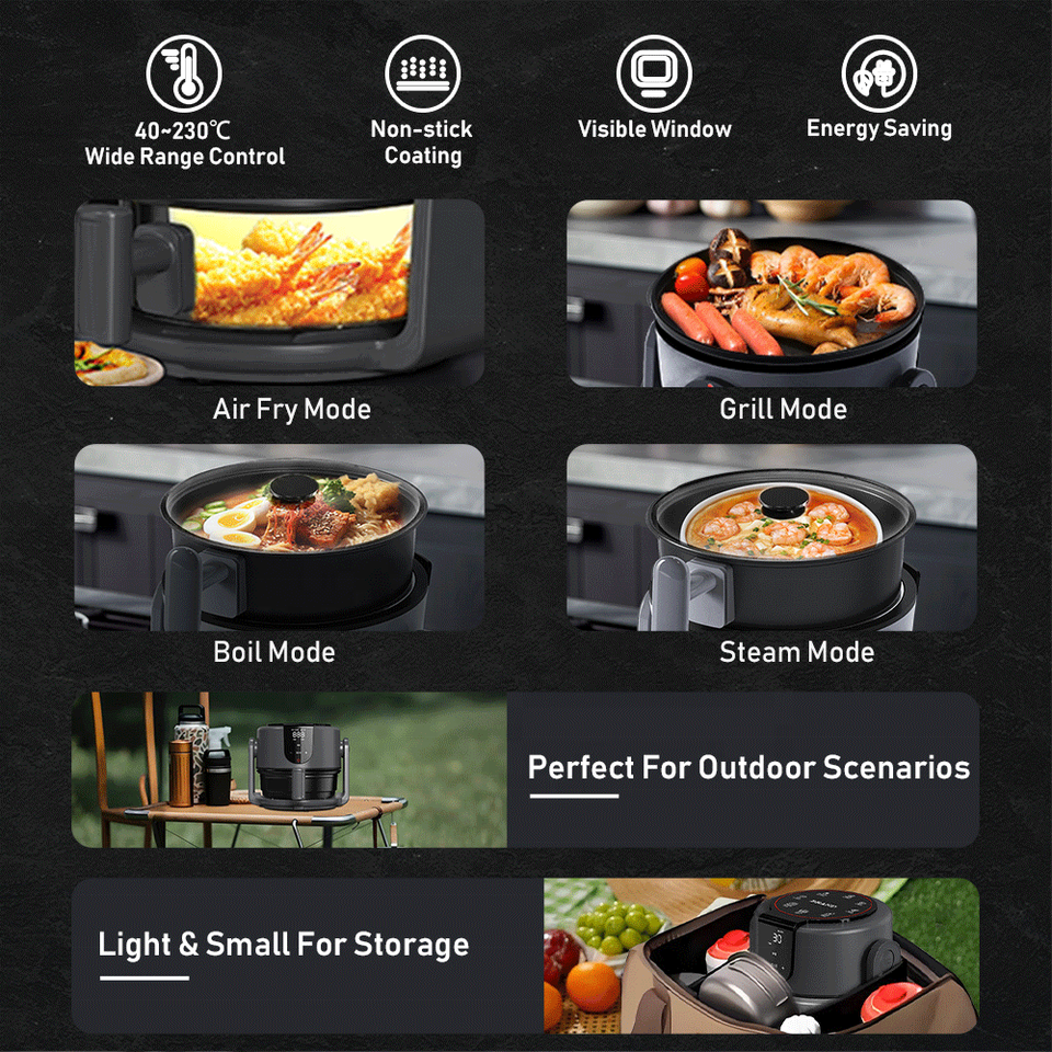 Travel Camping RV BBQ Portable Grill Air Fryer Hot Sale Outdoor Cooking Steam Boil All in One Compact Skillet Multicooker