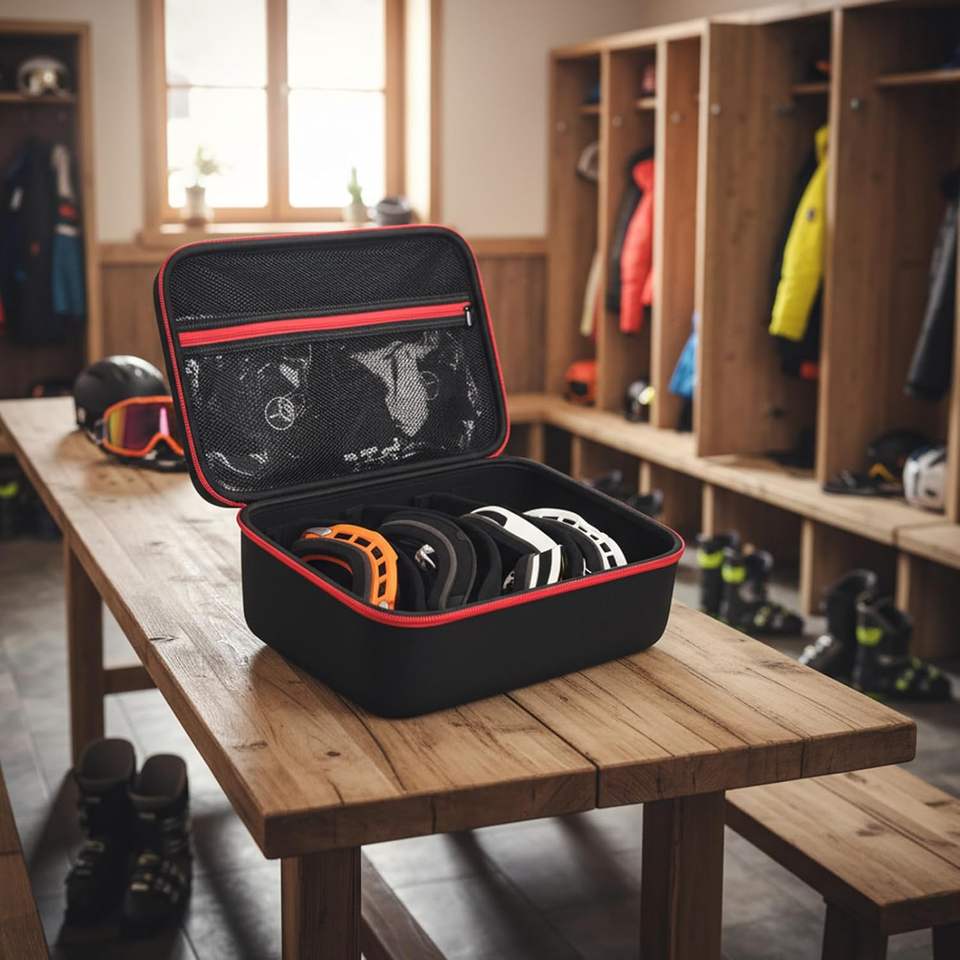 Travel Case For4Pairs Multiple Ski Googles,Portable Snowboard Snow Glasses Protective Bag with Mesh Pocket for Gloves,Veil,Spray