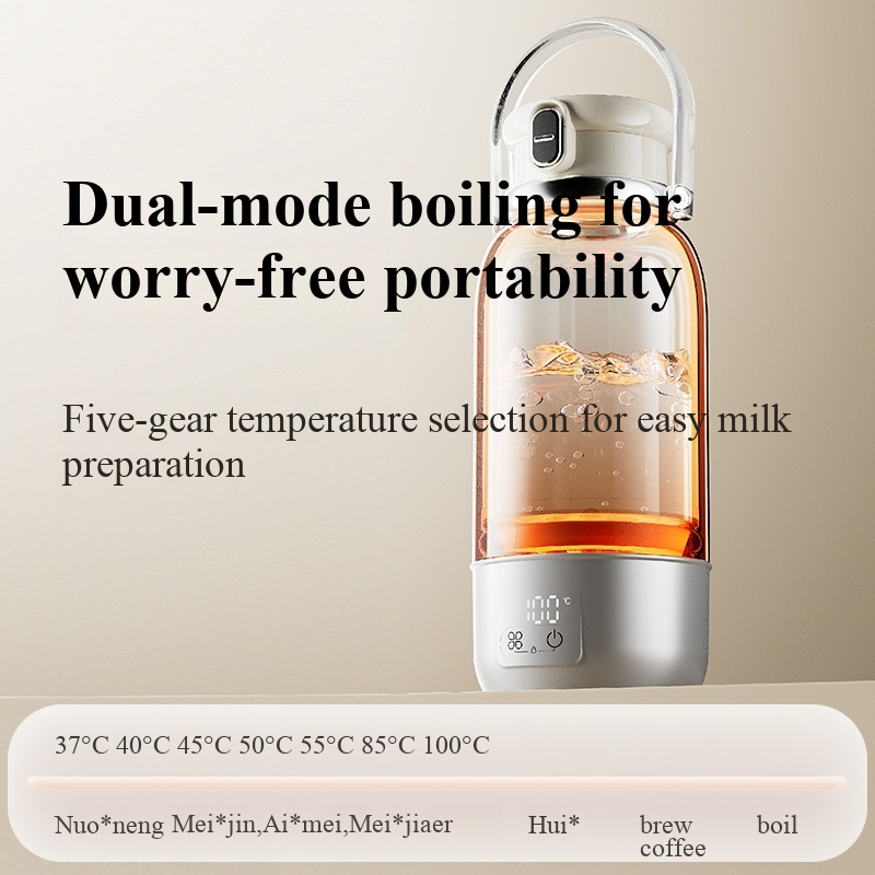 Chauffe-biberon portable USB pour bébé, idéal pour les voyages, la maison, l'extérieur et la voiture, 500 ml, 300 W, 316L, contrôle de la température à 5 vitesses, sans BPA, CE, isolation 6H