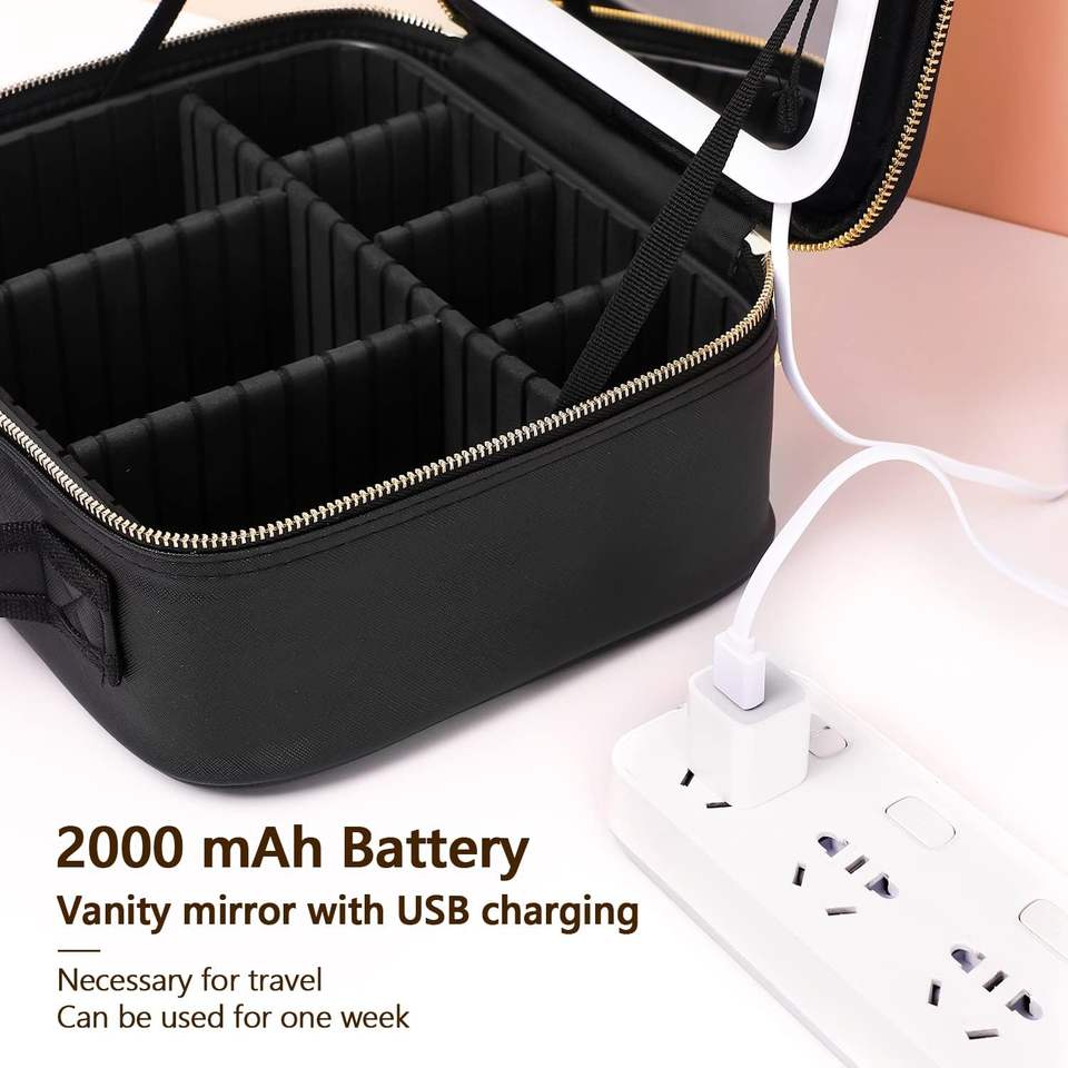 Étui de maquillage de voyage avec lumière LED Rechargeable 3 couleurs réglage miroir cosmétique fermeture à glissière Style de mode