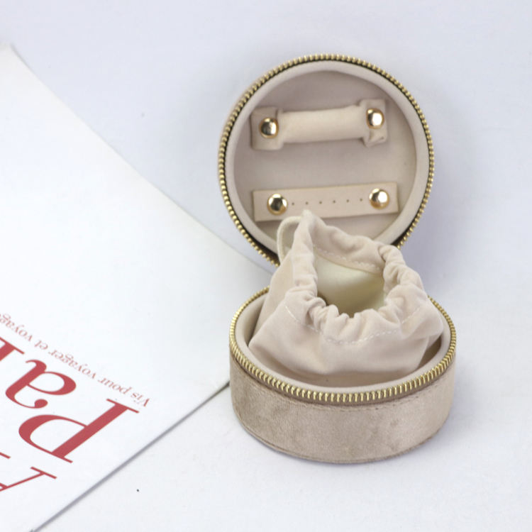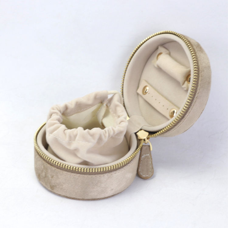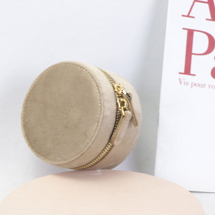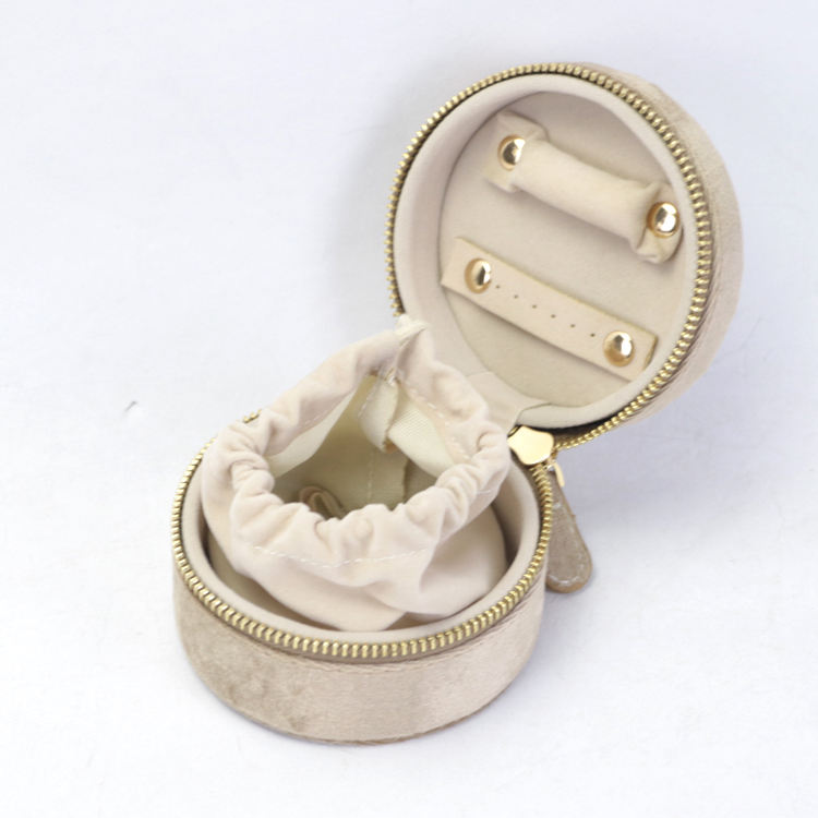 Pochette de rangement pour colliers, boîte ronde de voyage pour colliers bagues avec fermeture éclair, petites boîtes à bijoux en velours pour filles
