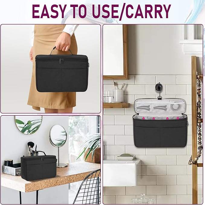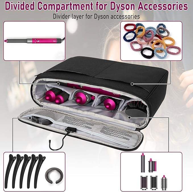 Sac de rangement de voyage compatible avec Dyson Airwrap Styler Sac de voyage portable pour bigoudi et fixation avec multi-poches