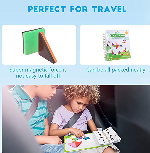 Puzzle Tangram de voyage, blocs à motif magnétique, jeux de voyage, Puzzle éducatif, livre de défi pour enfant
