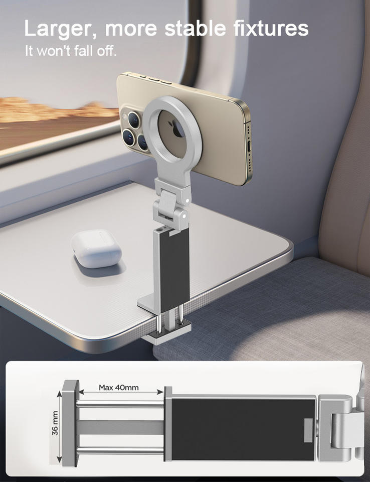 Support de téléphone portable magnétique pliable à clipser pour tablette et bureau, rotation à 360°, idéal pour les voyages en avion et en train