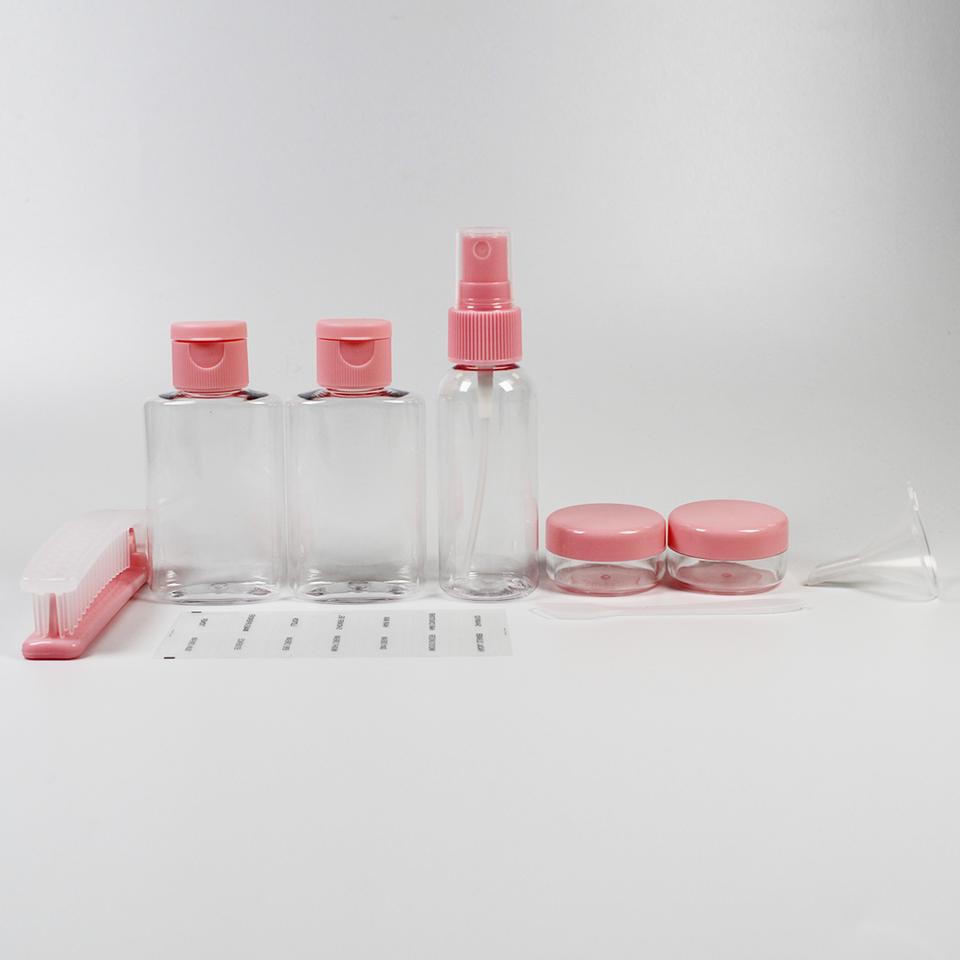 Kit de voyage rose clair pour sous-embouteillage – Bouteilles transparentes portables en plastique vides pour toner et démaquillant