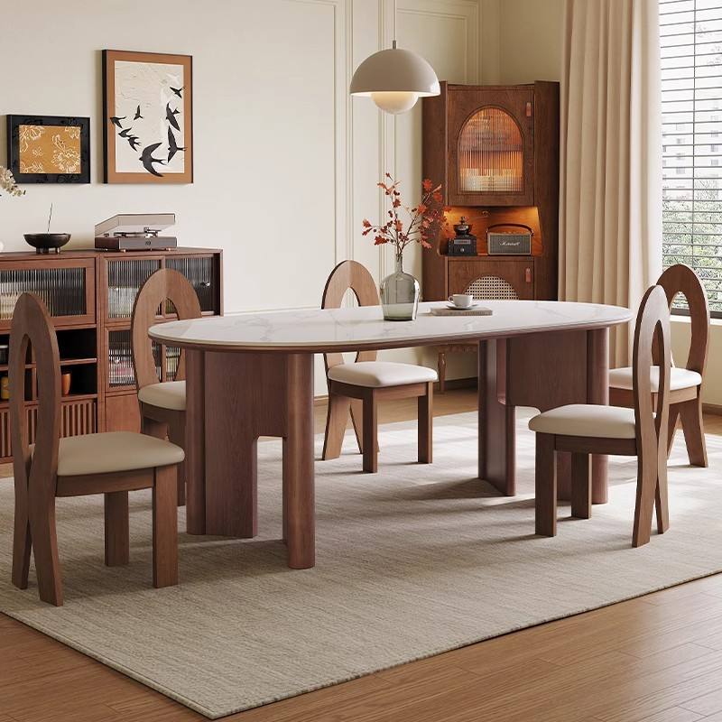 Table à manger en travertin et bois massif, ensemble de 6 pièces, style rectangulaire moderne et minimaliste, meubles de salle à manger gain de place
