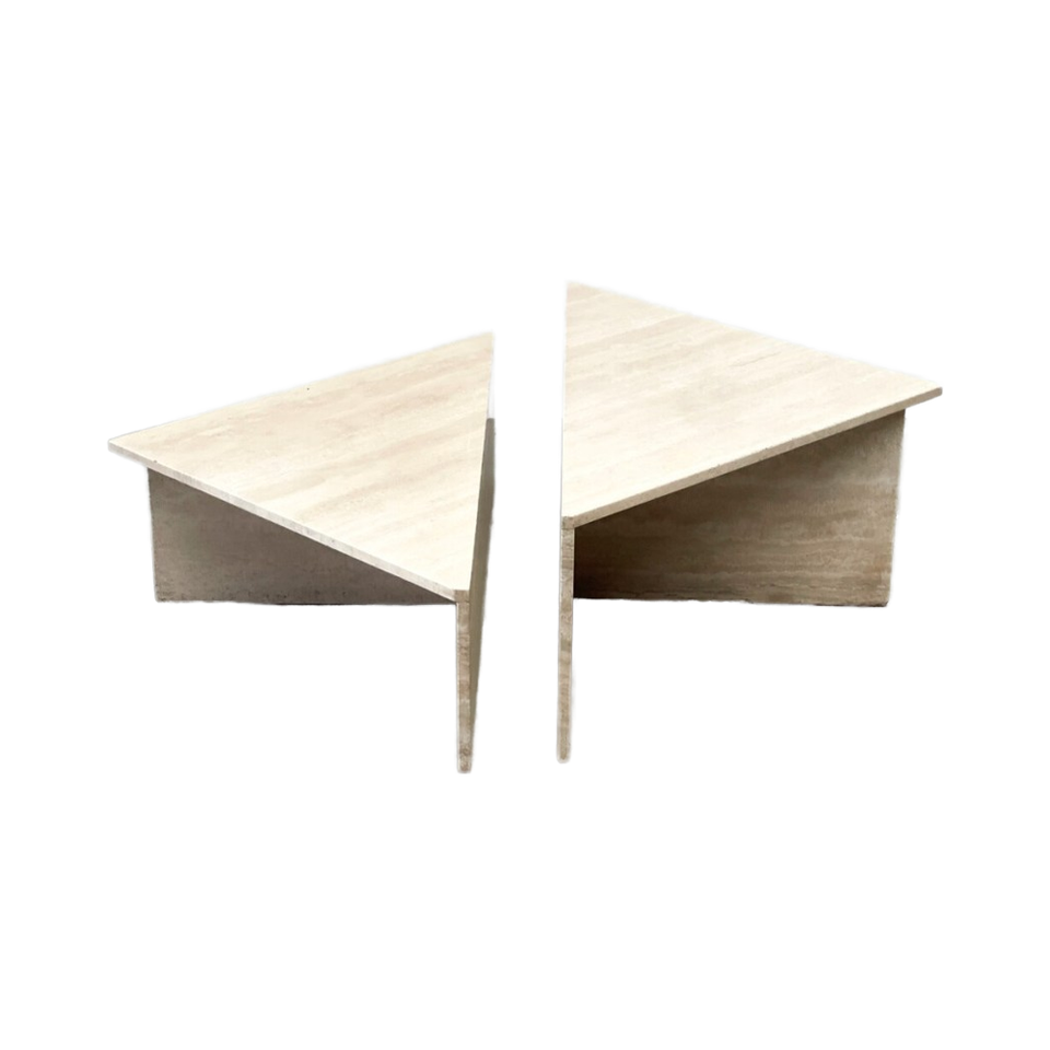 Table d'appoint triangulaire en travertin, résistante au feu, luxe moderne, meubles en pierre naturelle pour la cuisine et la salle à manger