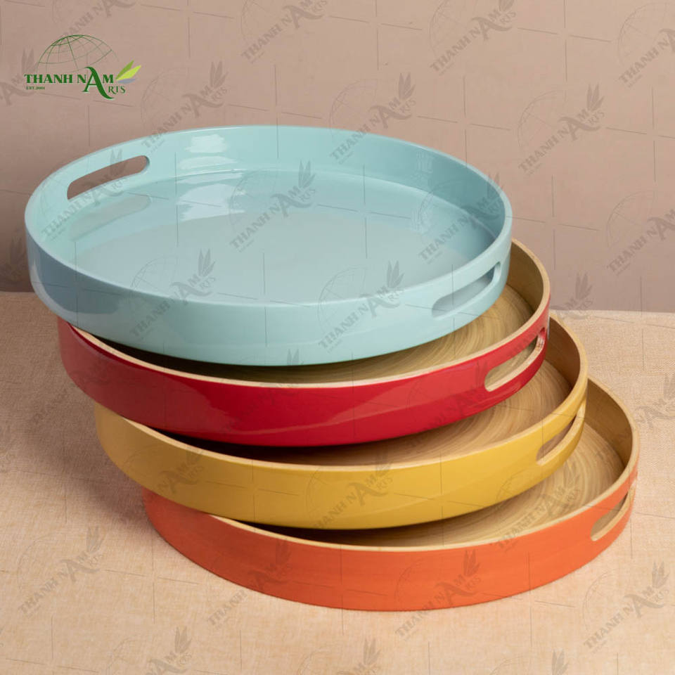 Plateau en bambou fait à la main, écologique, recyclable, plateau de service pour fruits avec poignées, organisateur décoratif, OEM personnalisé