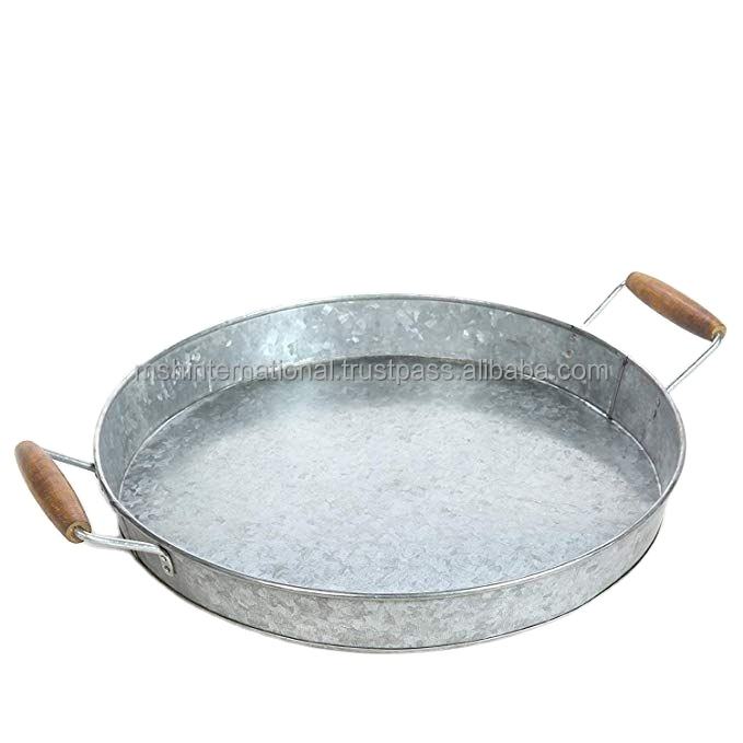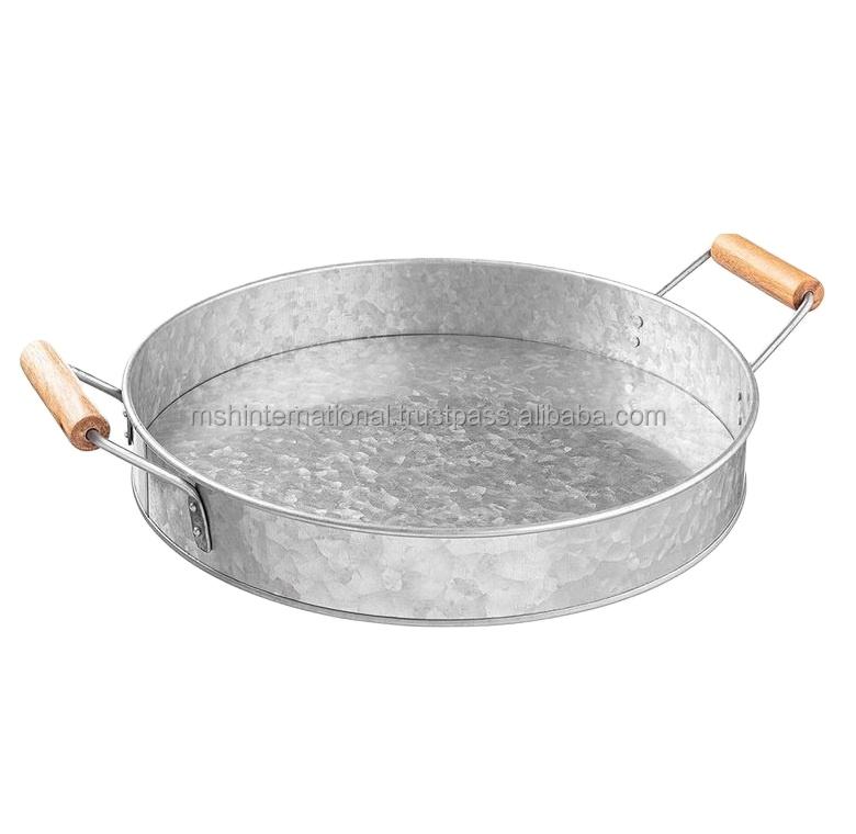 Ensemble de plateaux en métal avec poignée en bois, plateau de service de forme rectangulaire en acier galvanisé pour la décoration de la maison