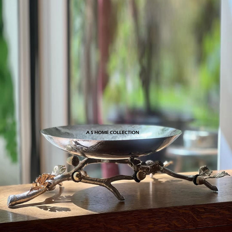 Bol en métal debout décoratif de conception de forme de branche d'arbre avec les compteurs et l'organisation argentés à extrémité élevé de finition de table