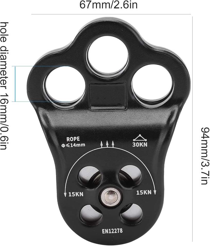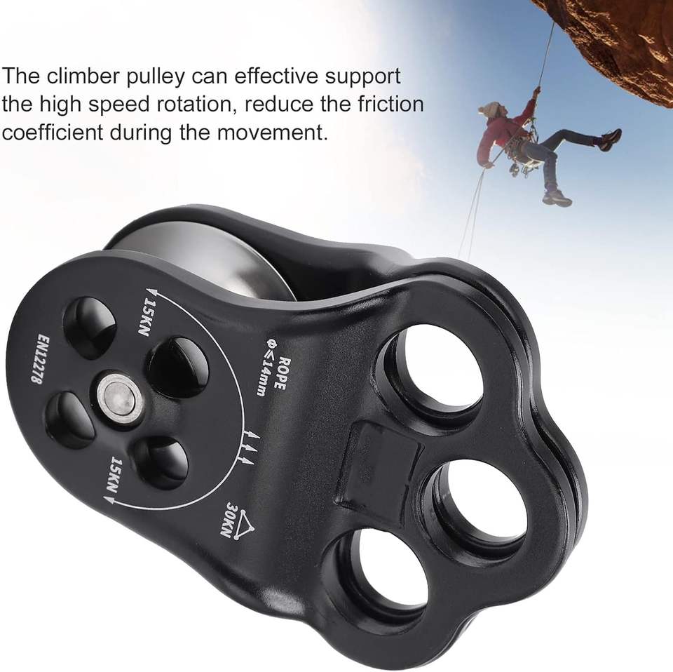 Équipement d'escalade d'arbre, poulie d'escalade à trois trous, poulie simple en aluminium haute résistance, escalade décontractée en plein air