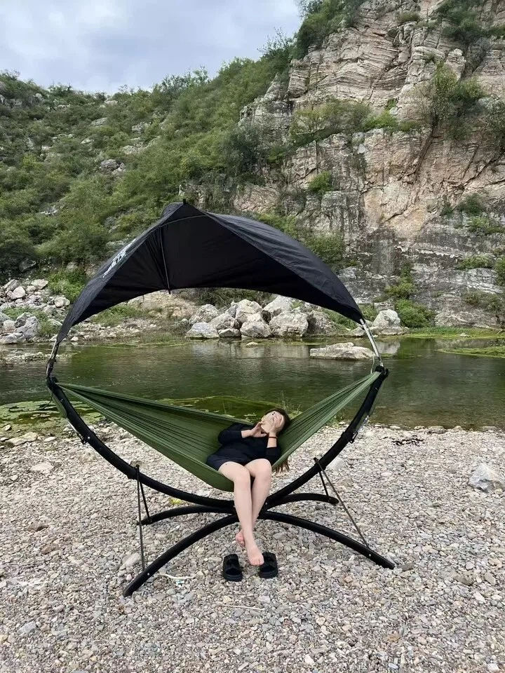 Hamac pliable sans arbre avec support, hamac d'extérieur robuste pour 2 à 3 personnes