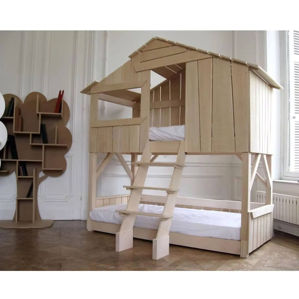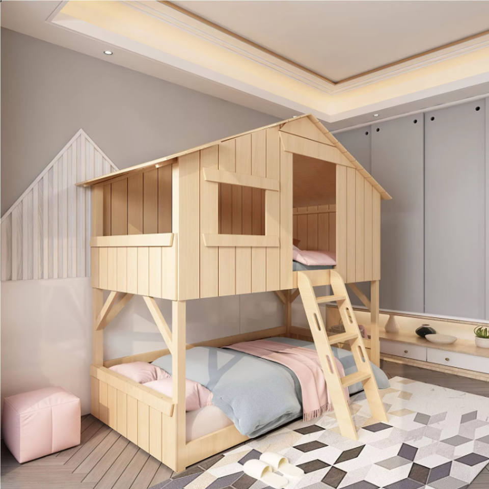 Lit superposé moderne en bois massif durable pour enfants, avec toboggan, design ferme et scolaire, lit familial pour chambre haute/basse