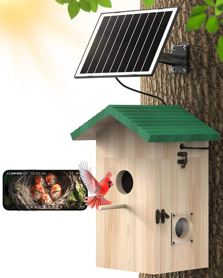 Maison d'oiseau montée sur l'arbre avec caméra caméra de nichoir à énergie solaire 5MP caméra de Vision nocturne couleur surveillance de l'observation des oiseaux