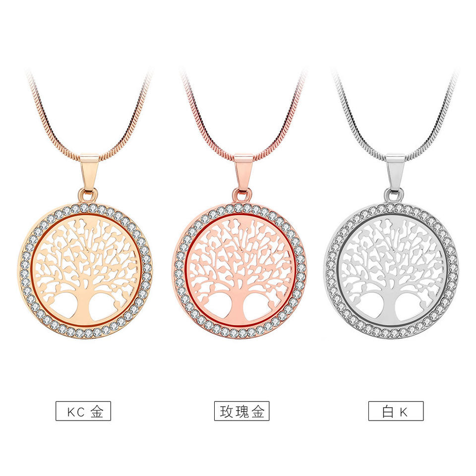 Tree Of Life Pendant Necklace Diamond Encrusted Hollow Design For Women KC Gold Rose Gold White K Everyday Wear
