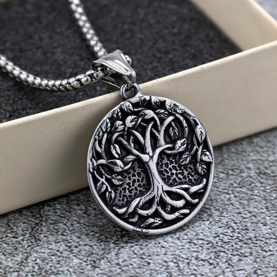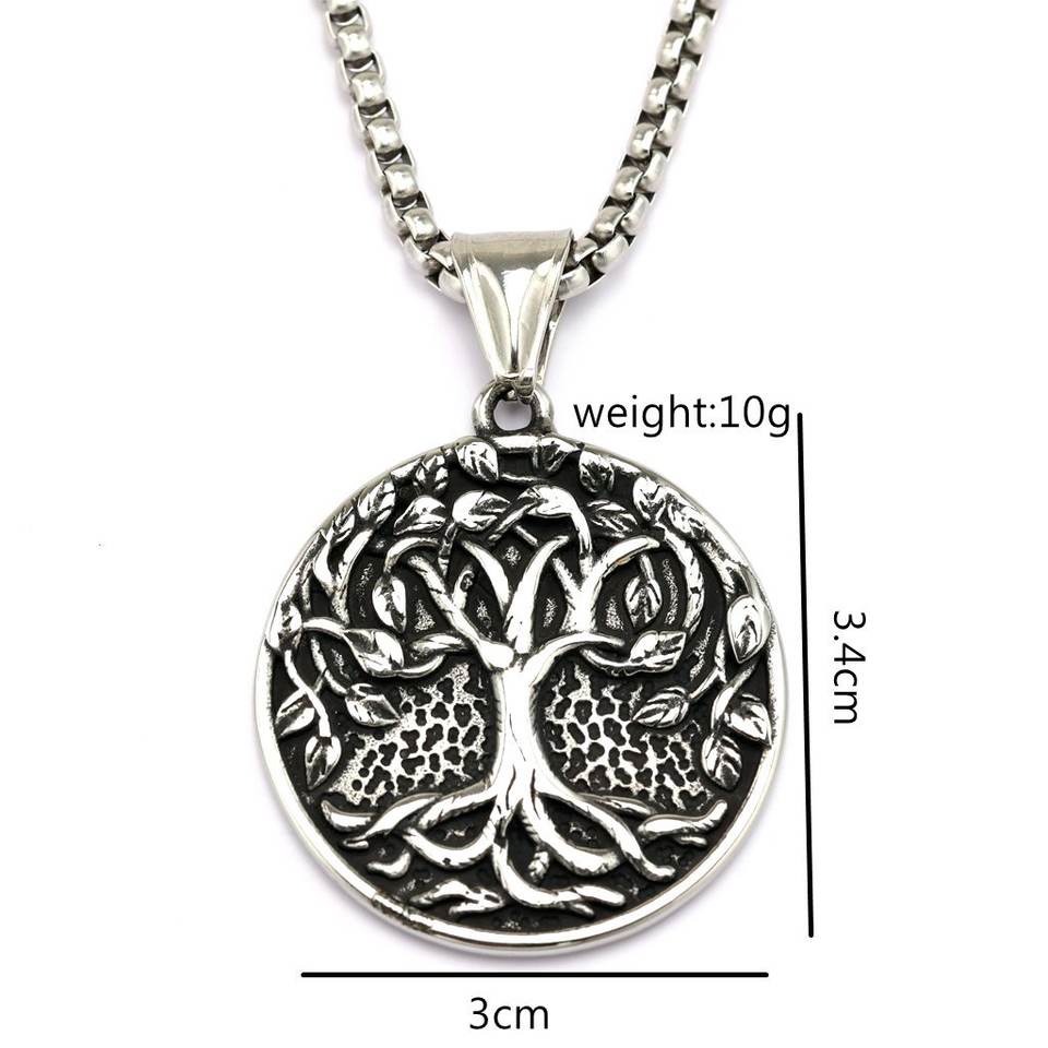 Collier avec pendentif arbre de vie en acier inoxydable, bijoux unisexes avec breloque ronde, cadeau