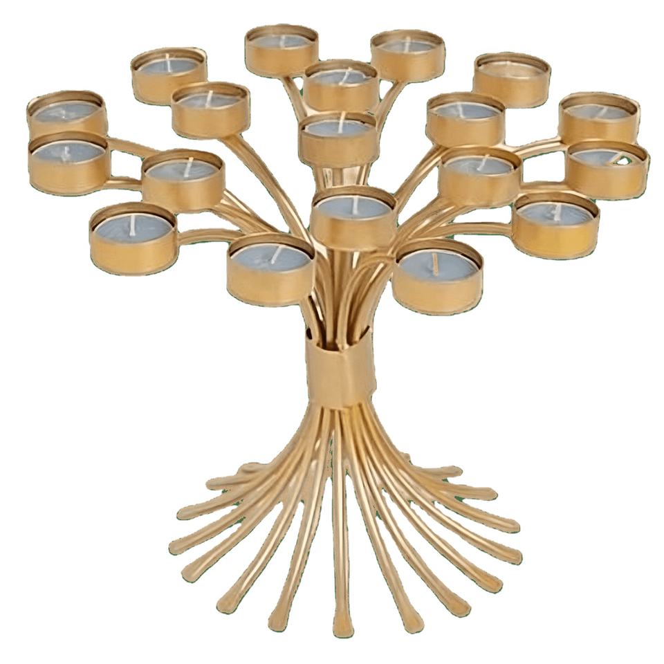 Bougeoir en métal candélabre en forme d'arbre Design de feuille florale Finition dorée à la main Bougeoir multiple décoratif