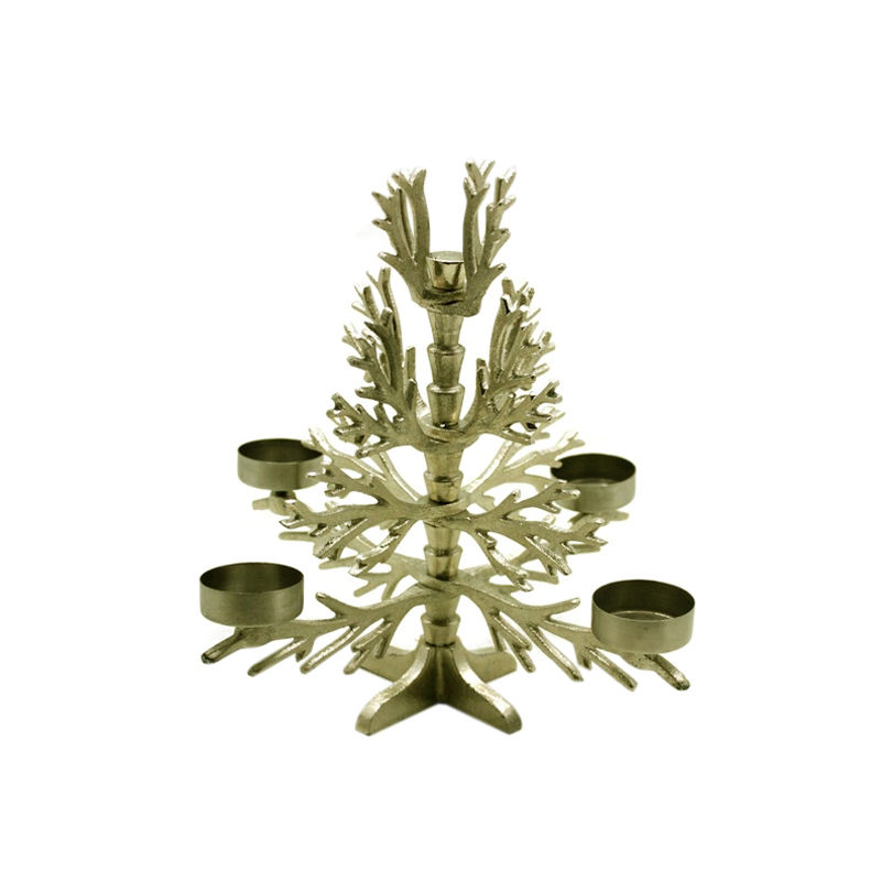 Forme d'arbre personnalisé fer métal avent bougeoir argent fini pour la maison et l'éclairage de fête de noël