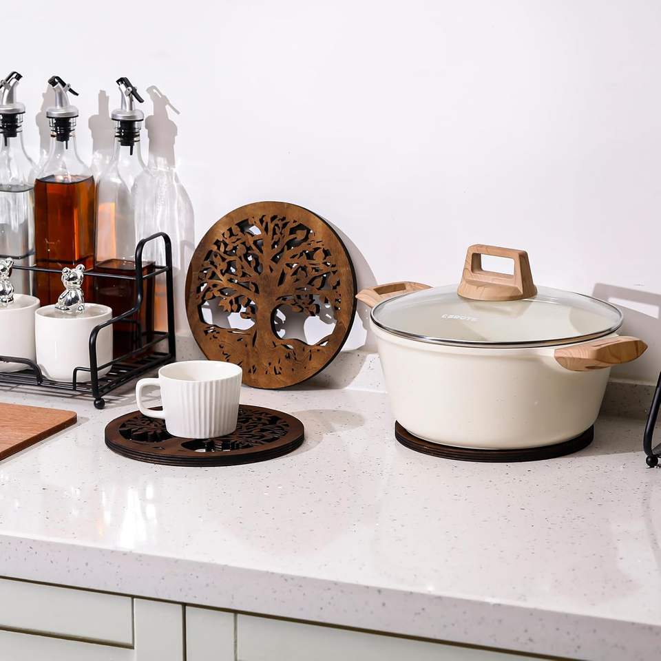 Sous-plats en bois d'arbre, rond, rustique, pour la cuisine et la salle à manger