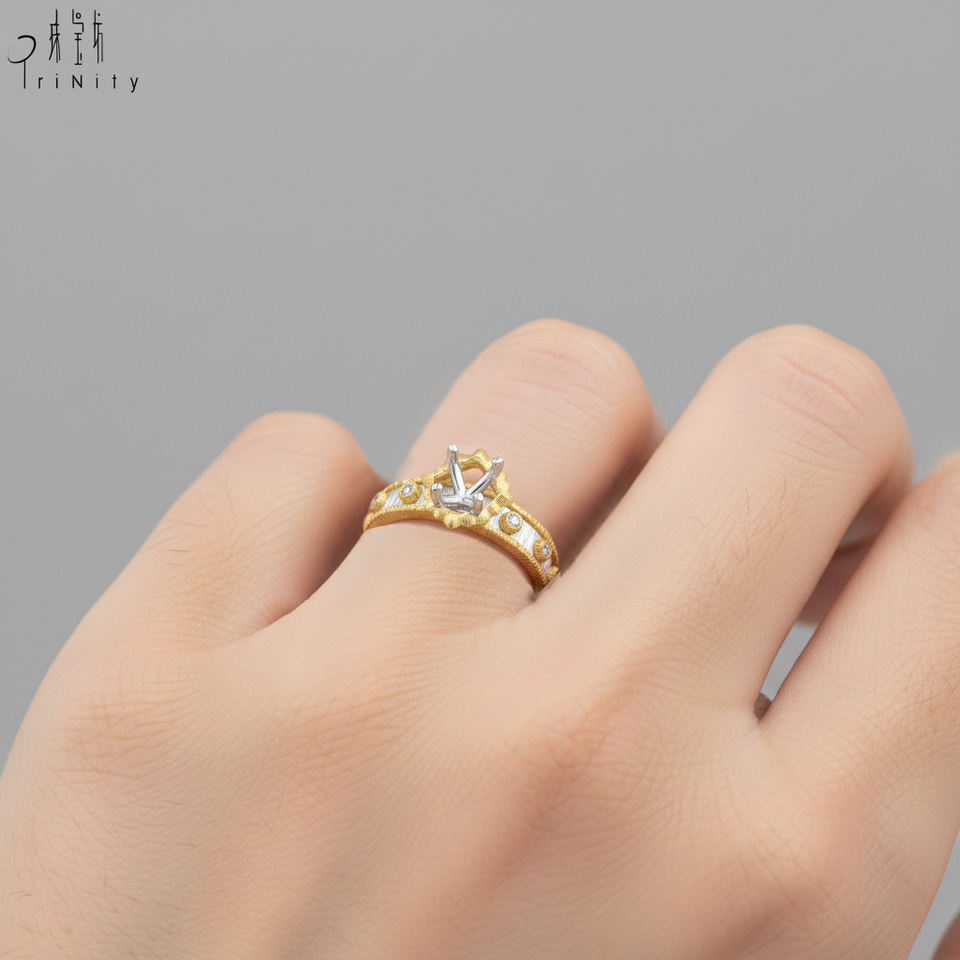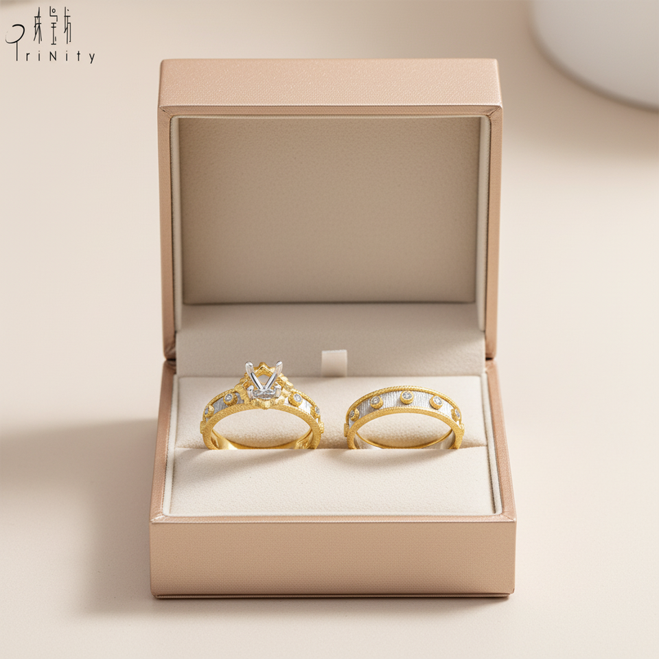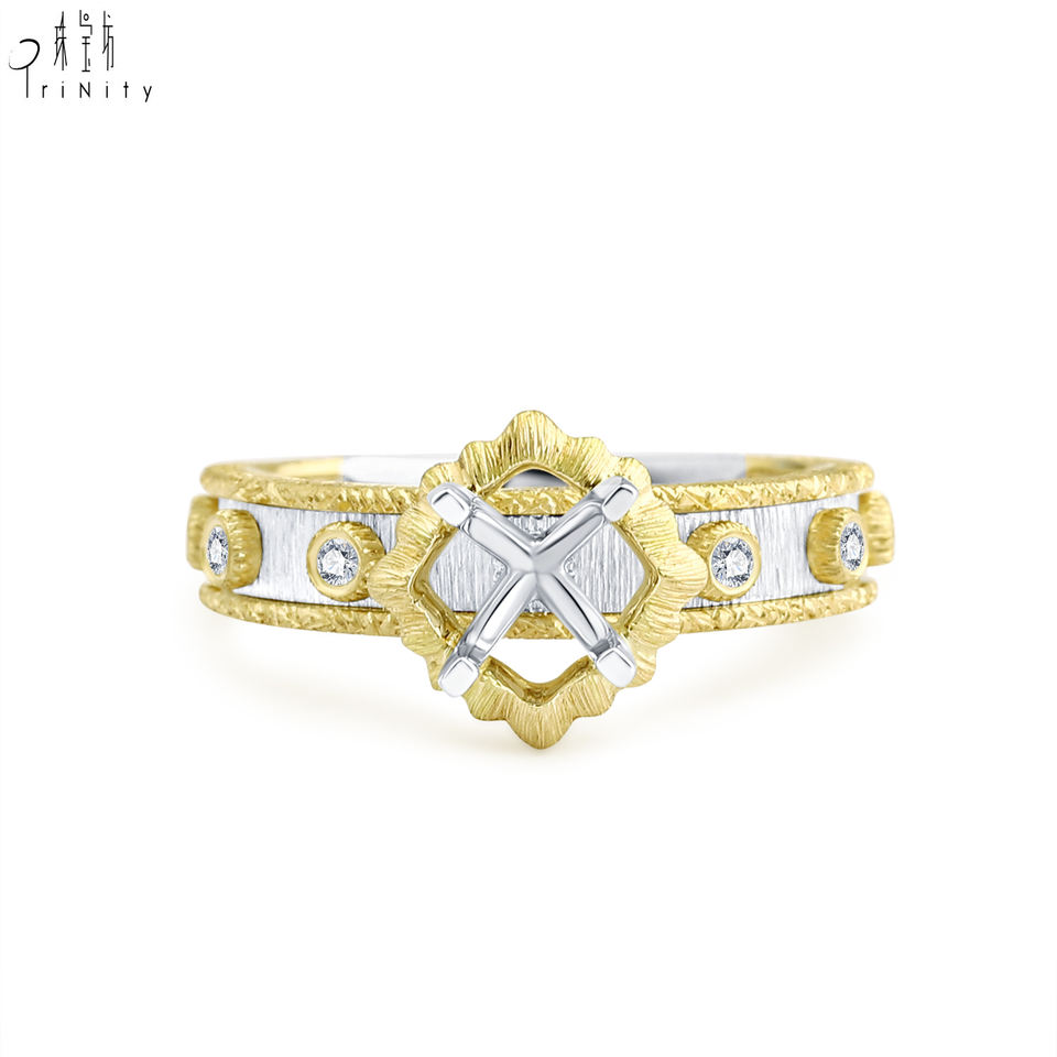 Bagues de fiançailles semi-montées de qualité exceptionnelle, bijoux en or jaune et blanc massif 18 carats avec diamants naturels, bagues assorties