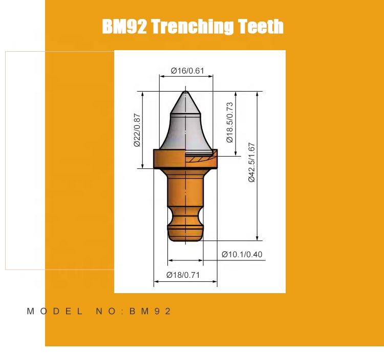 Pointes de tranchée BM92 avec pointes en carbure pour machines de tranchage